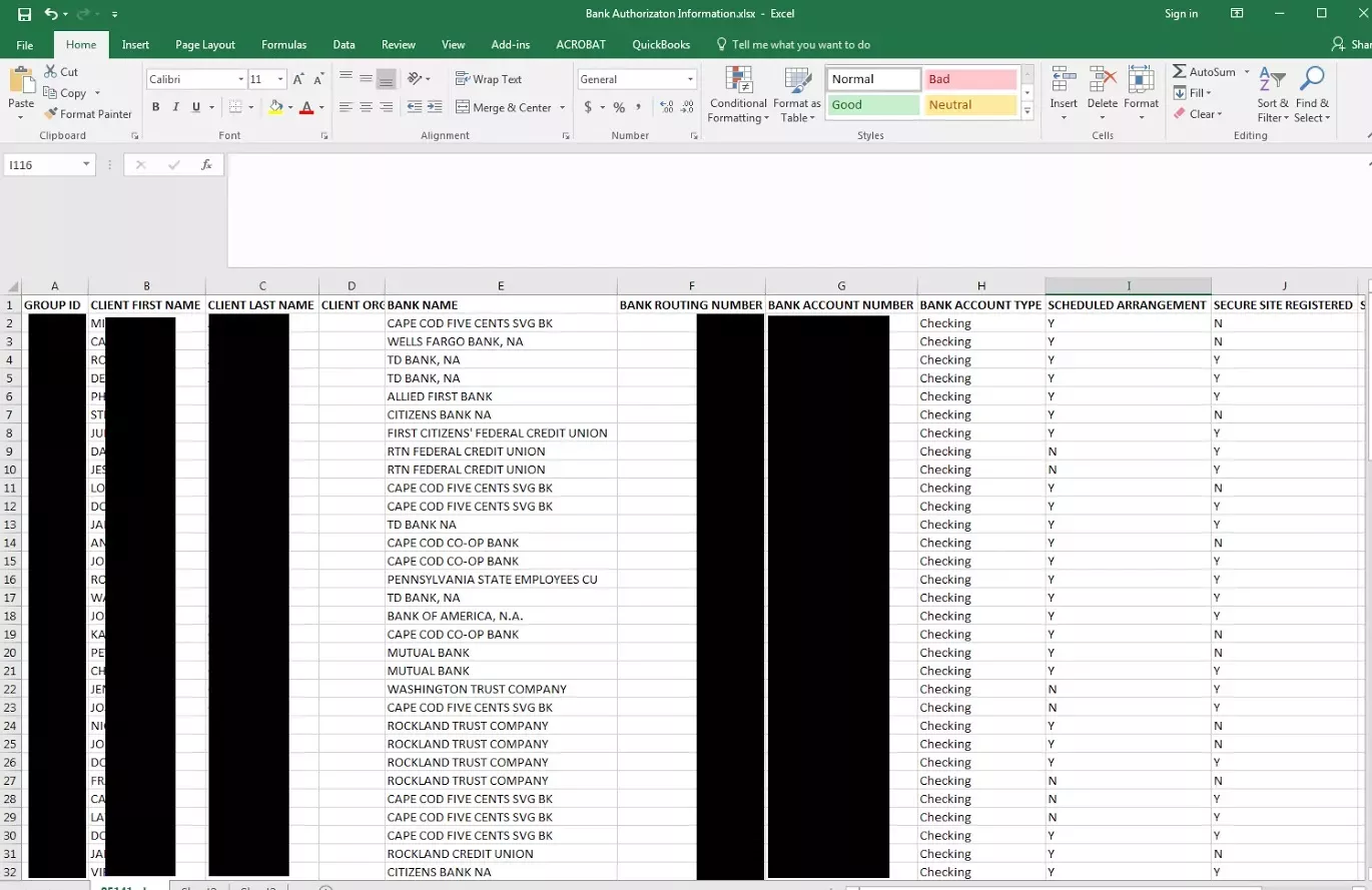 There were several folders containing the private and personal information of over a thousand customers and employees. Some of the files had social security numbers and even spouse social security numbers.