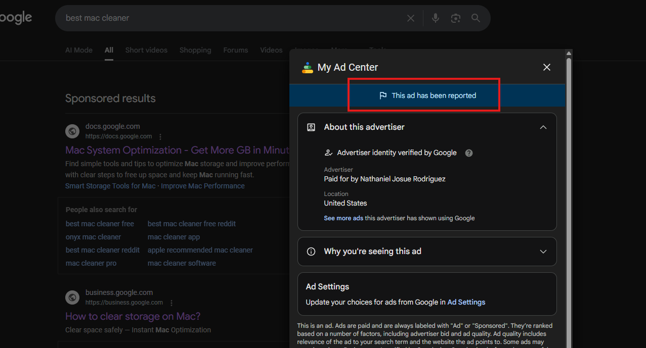 We've already reported these ads to Google to protect Mac users from being hacked.
