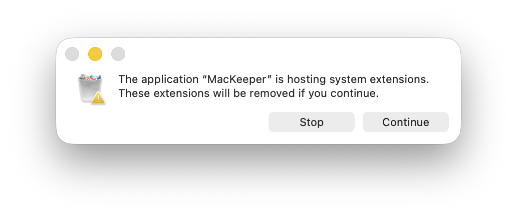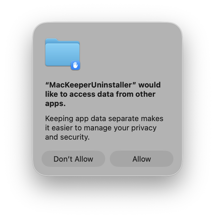 This window appears only on newer macOS versions if you have installed the MacKeeper StopAd Extension in Safari. MacKeeperUninstaller doesn't have full disk access, so the system requires permission to delete all MacKeeper-related files.