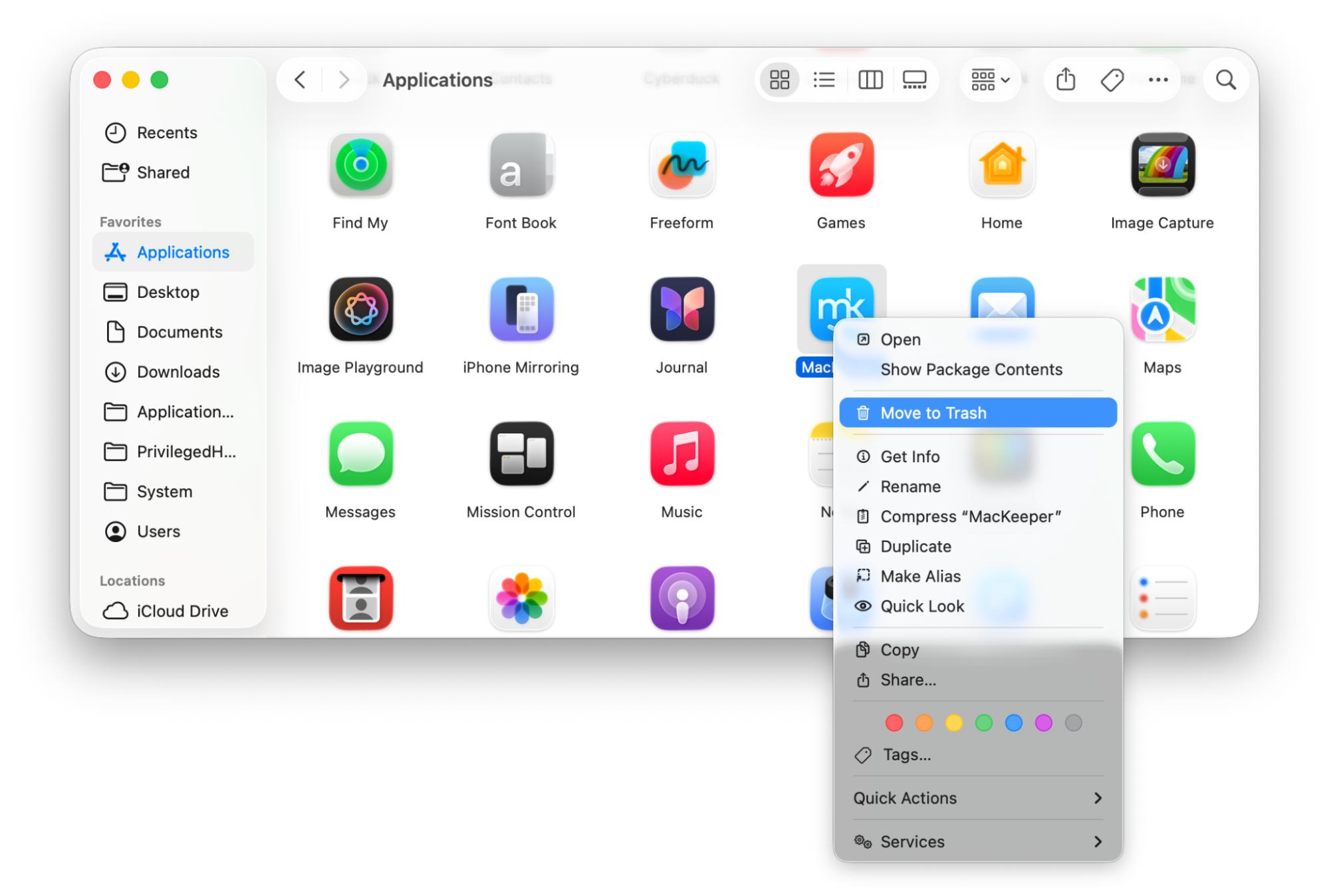 2. Go to Finder > Applications and drag the MacKeeper icon to Trash