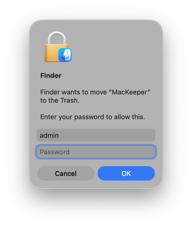 3. Enter your Mac admin password in the notification box to confirm